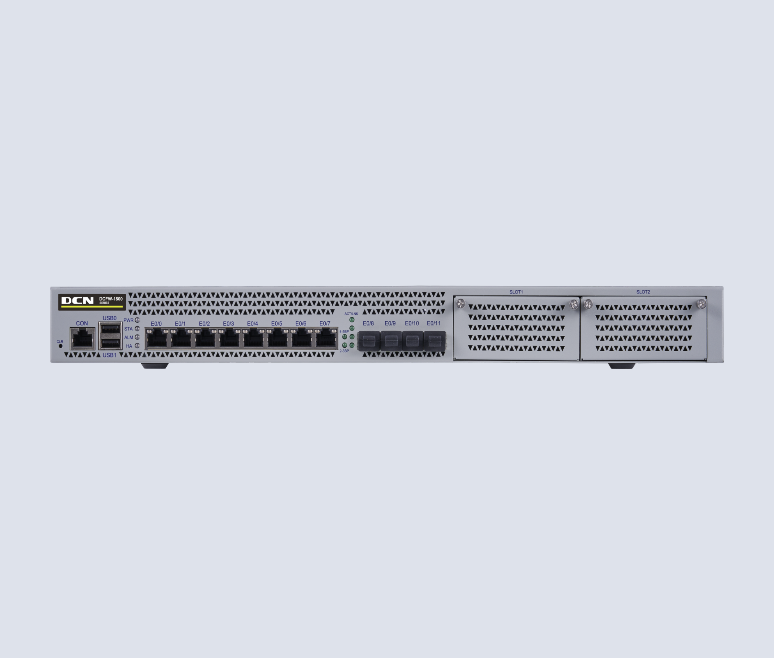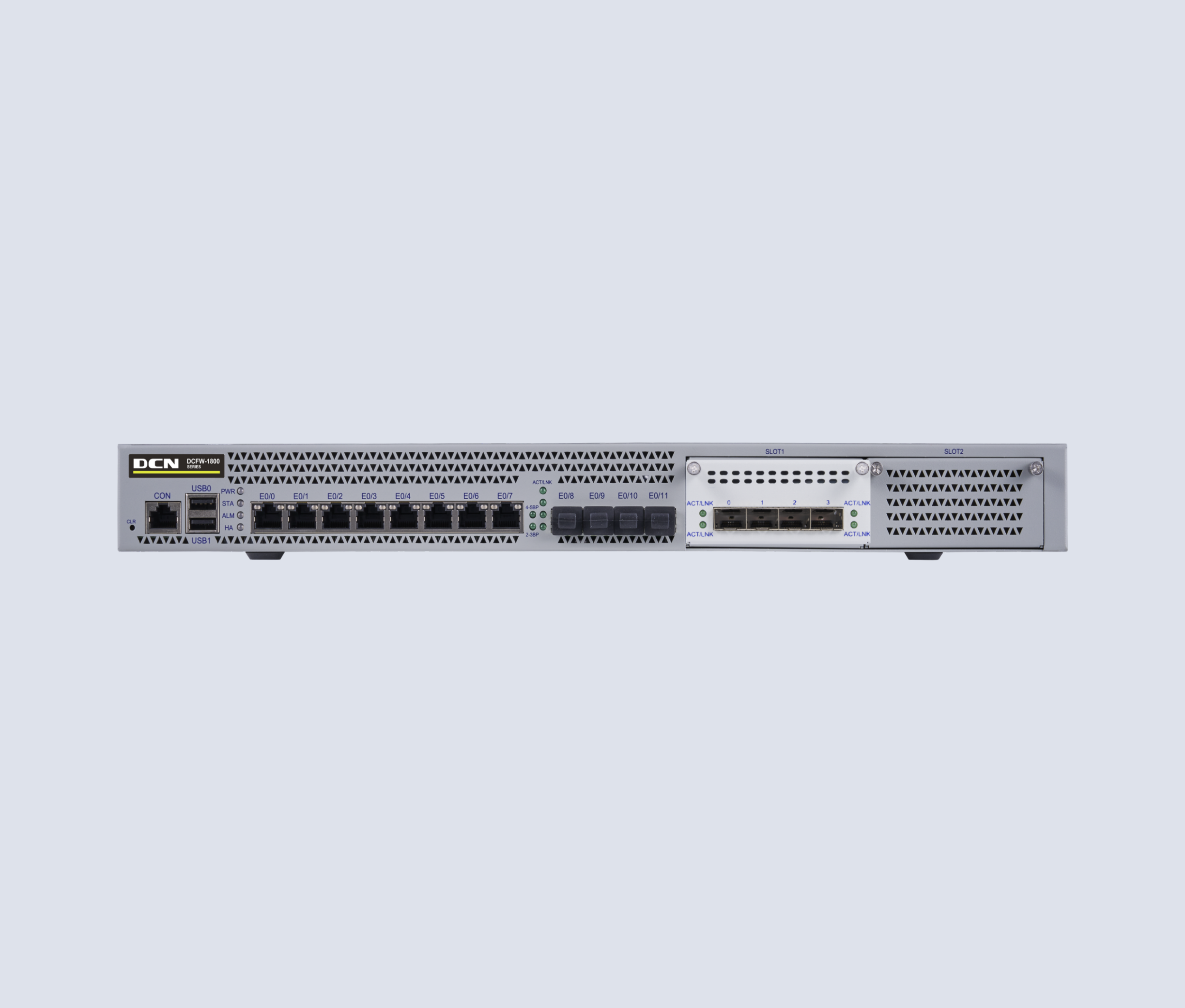 DCFW-1800-N5880-G 软硬件平台基本系统,含硬件保修、应用识别库升级和软件升级维护服务。硬件参数:1U,1 个CON 口,1 个MGT口,1个HA口,2个USB口,8个千兆电+8个万兆光口,2个通用扩展槽。